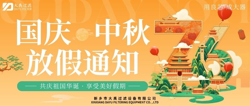 尊敬的客戶及合作伙伴:秋風(fēng)送爽,丹桂飄香。值此國(guó)慶與中秋雙節(jié)來臨之際,謹(jǐn)向您及家人致以zui誠(chéng)摯的節(jié)日祝福!根據(jù)國(guó)家法定節(jié)假日安排,結(jié)合公司實(shí)際情況,現(xiàn)將2025年國(guó)慶+中秋雙節(jié)放假安排及相關(guān)事項(xiàng)通知如下:一、放假時(shí)間2025年10月1日(星期三)至10月6日(星期一),共計(jì)6天。10月7日(星期二)起正常上班。9月28日(周日)、10月12日(周日)補(bǔ)班。二、業(yè)務(wù)服務(wù)說明放假期間,公司線上咨詢通道保持暢通。銷售人員將不定期查看并回復(fù)您的咨詢,但受假期影響,可能存在回復(fù)延遲的情況,敬請(qǐng)諒解。如遇緊急事項(xiàng),您可撥打以下熱線:王經(jīng)理13613905650;李經(jīng)理13839073363,我們將竭誠(chéng)為您服務(wù)。三、生產(chǎn)安排提醒因車間節(jié)前生產(chǎn)訂單已排滿,為確保假期前后生產(chǎn)質(zhì)量與效率,放假期間(10月1日至10月6日)將暫停安排新生產(chǎn)訂單生產(chǎn)。節(jié)前已下單的訂單將按原計(jì)劃正常推進(jìn),放假期間新接訂單將統(tǒng)一順延至10月7日復(fù)工后,按序安排生產(chǎn)。由此帶來的不便,我們深表歉意,感謝您的理解與支持。四、溫馨提示假期出行請(qǐng)注意安全,做好個(gè)人防護(hù)。公司官網(wǎng)及社交媒體平臺(tái)將持續(xù)更新節(jié)日動(dòng)態(tài)及服務(wù)資訊,歡迎隨時(shí)關(guān)注。佳節(jié)共團(tuán)圓,服務(wù)不間斷。值此雙節(jié)同慶的美好時(shí)刻,衷心感謝您長(zhǎng)期以來對(duì)我司的信任與支持!我們期待在節(jié)后以更飽滿的熱情、更優(yōu).質(zhì)的服務(wù)與您攜手同行,共啟新程!此致敬禮!新鄉(xiāng)市大禹過濾設(shè)備有限公司2025年9月28日